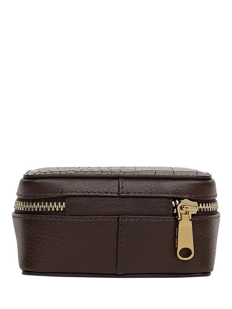 Radley have used their expertise in leather accessories to create the Commute Street jewellery pouch. Made for carrying your favourite pieces when on the go, this zipped square shape is crafted with textured croc-embossed leather, high-shine branded hardware and a faux suede lining.