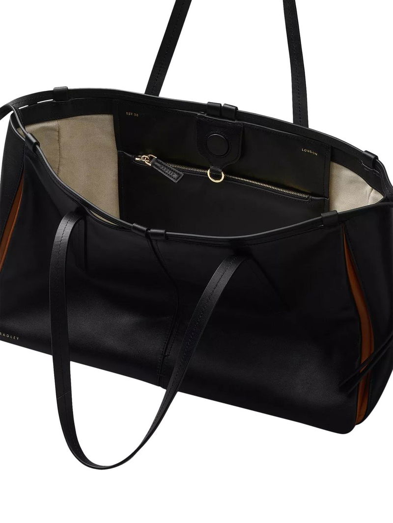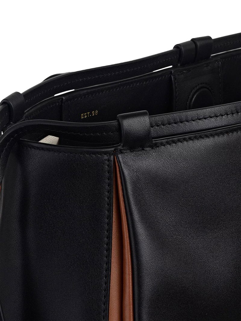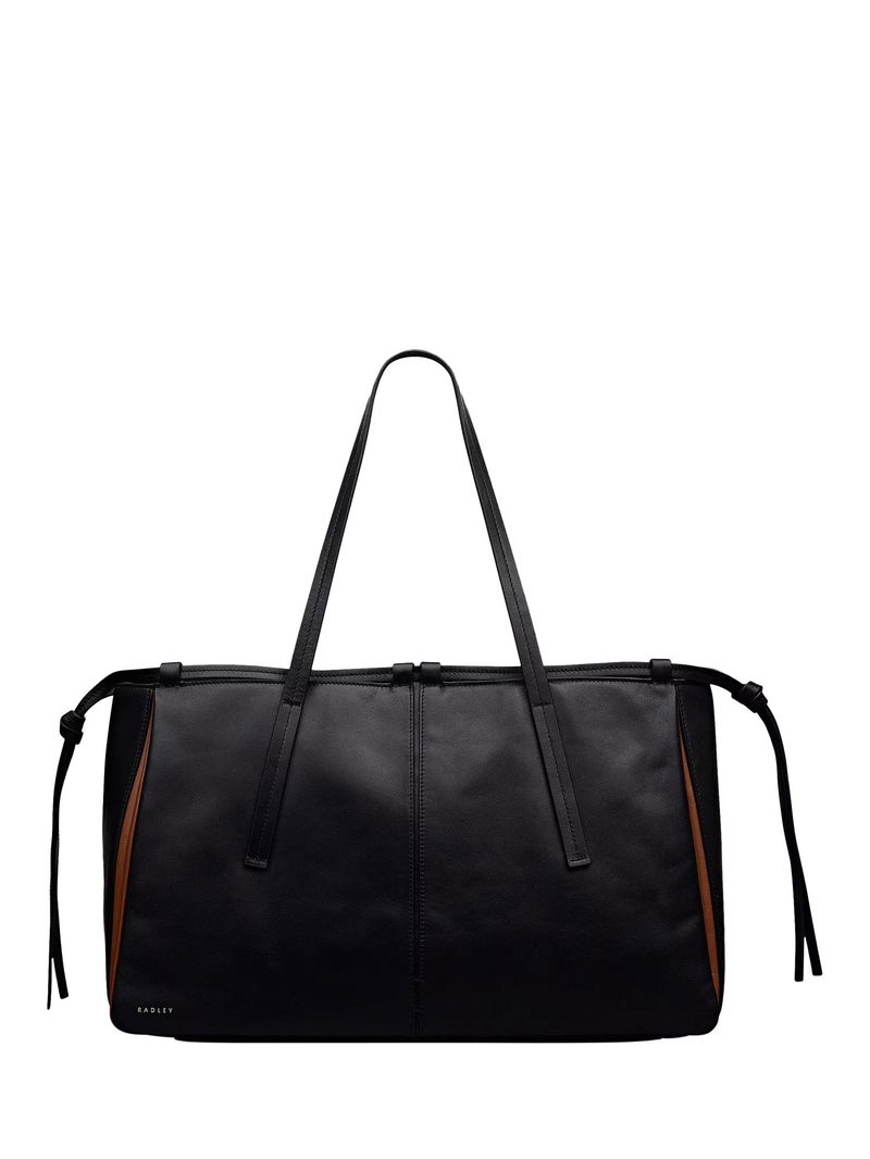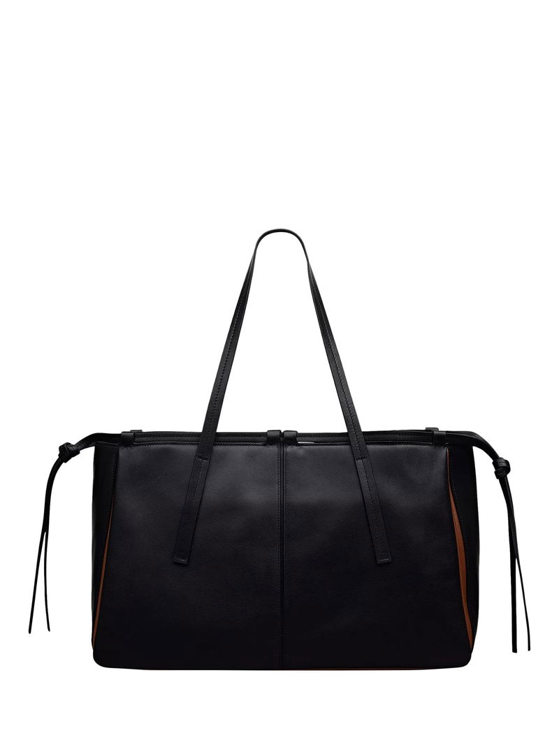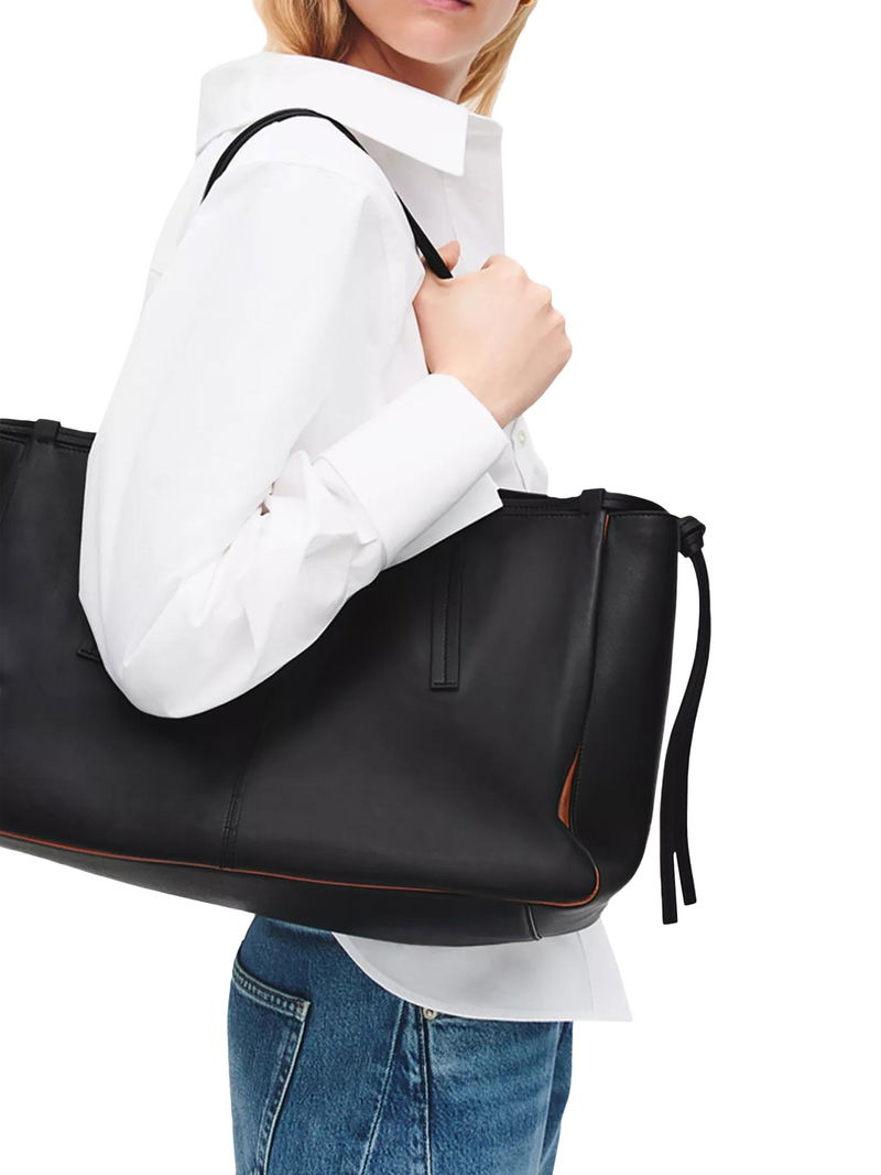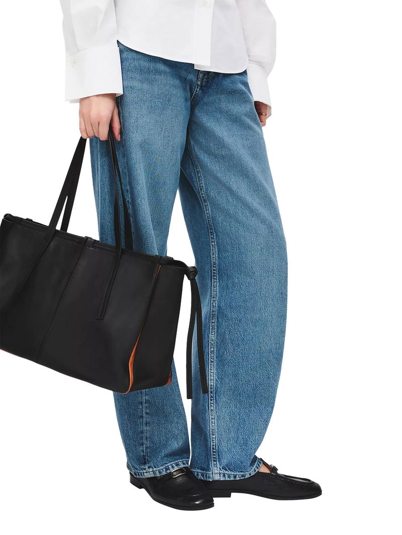 An abundance of craft details transform The Connaught from an everyday tote bag into an artisanal creation. Details include thin leather threaded through the loops along the top edge, decorative knotted trims that hang at the sides and contrast inserts, which can be spotted at the gussets.