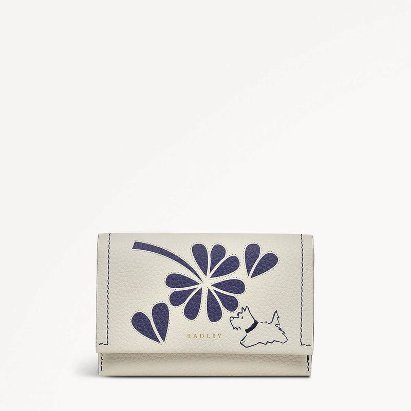 Cut Out Floral Leather Medium Flapover Wallet In Chalk