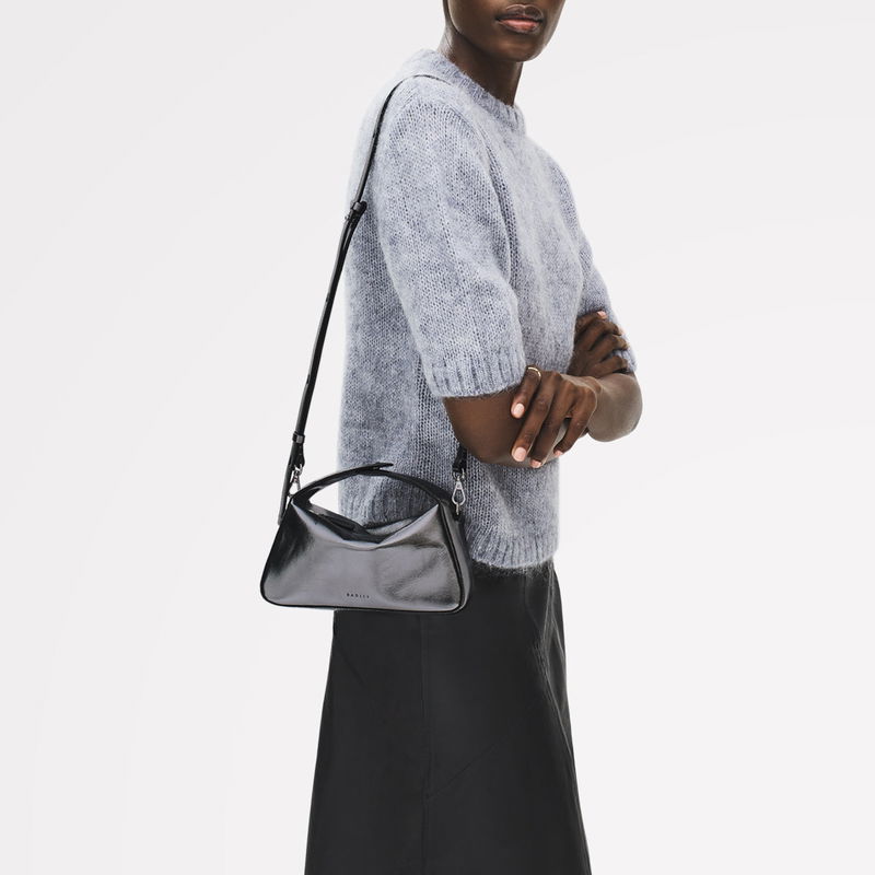 De Beauvoir Leather Small Ziptop Grab Bag In Silver