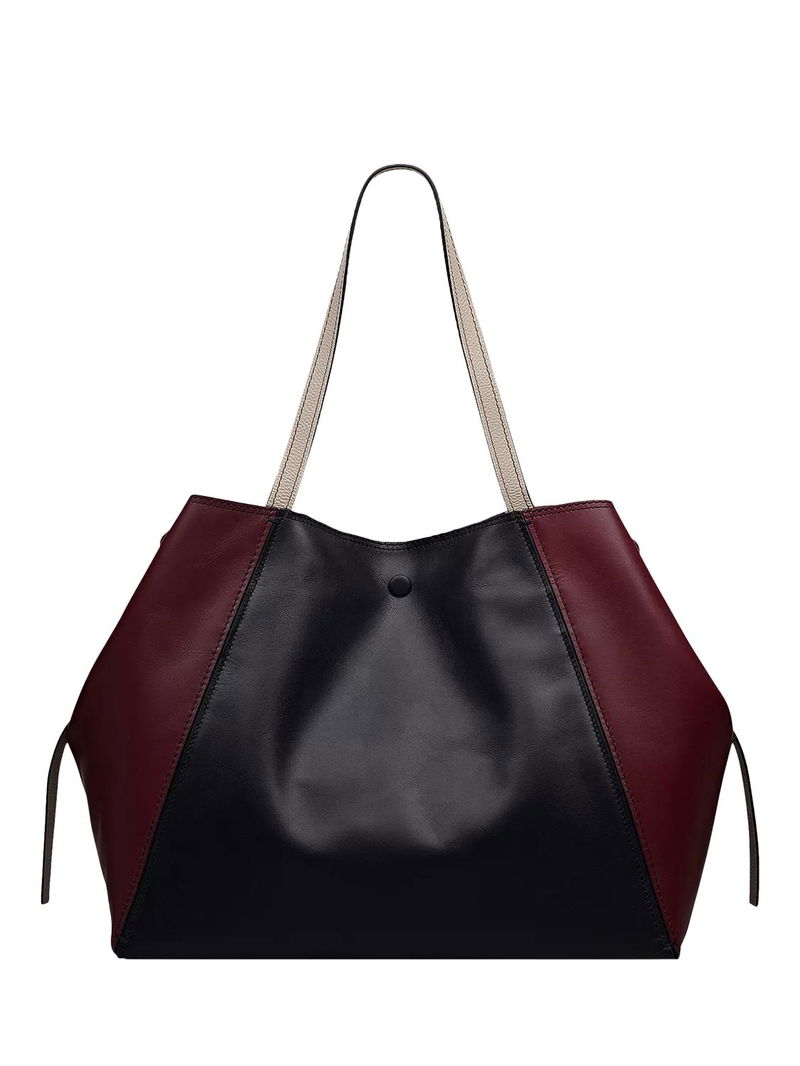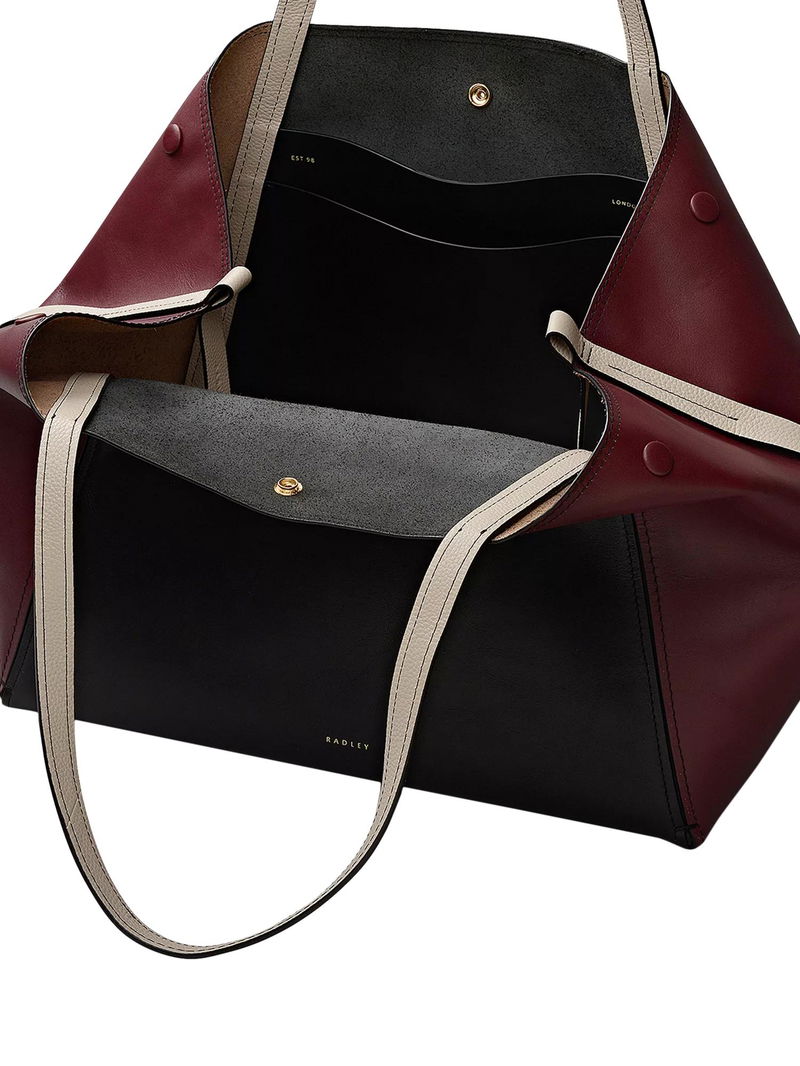 More than just a spacious, smooth leather tote bag, the Delphine is made up of thoughtful craft details: the panel construction, framed with thin and thick contrast stitching; the exaggerated wings that tuck inside; and the branded leather-covered press studs along the top, which can be used to fasten the bag in multiple ways.