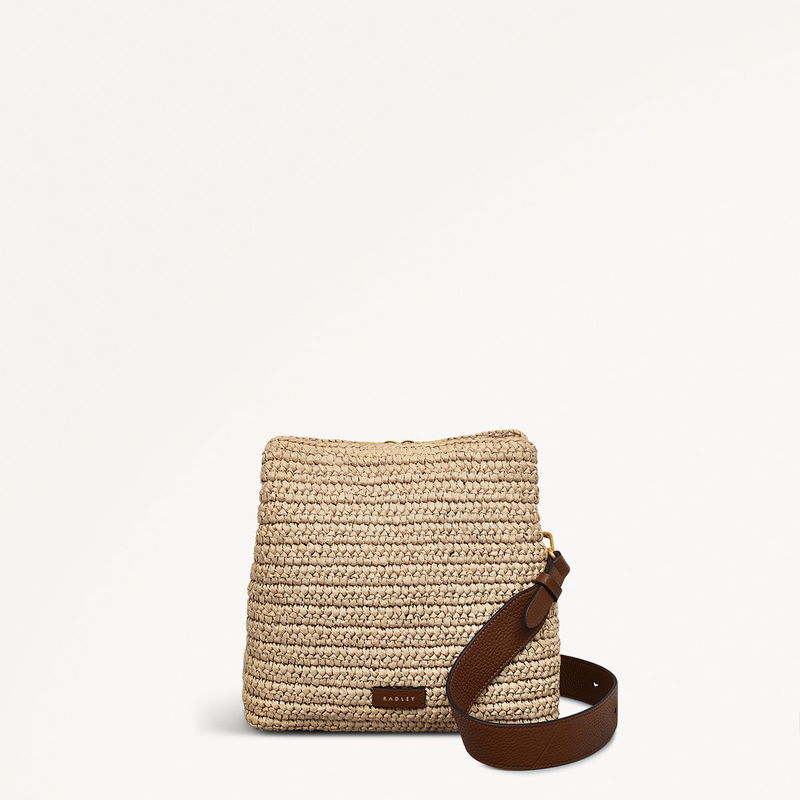 A firm favorite, the bestselling Dukes Place crossbody bag has been reimagined in a summery combination of natural crocheted raffia and contrasting leather.