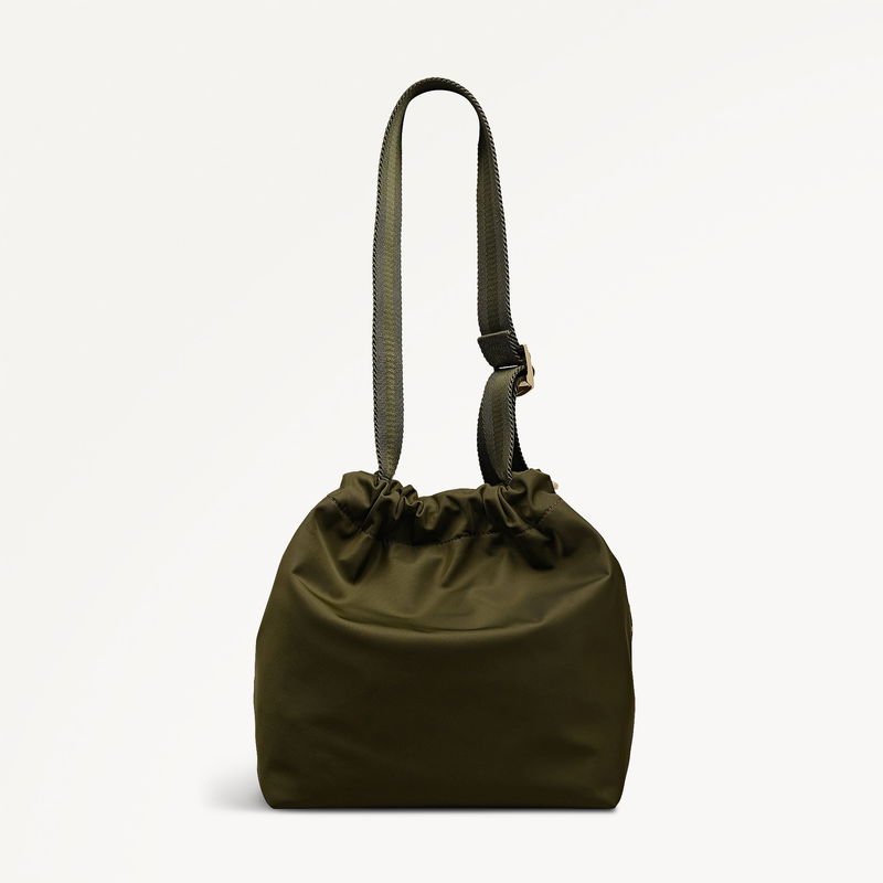 Eden Row Fabric Small Open Top Cross Body Bag In Khaki