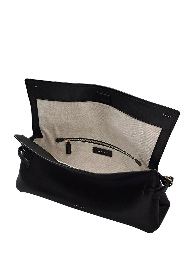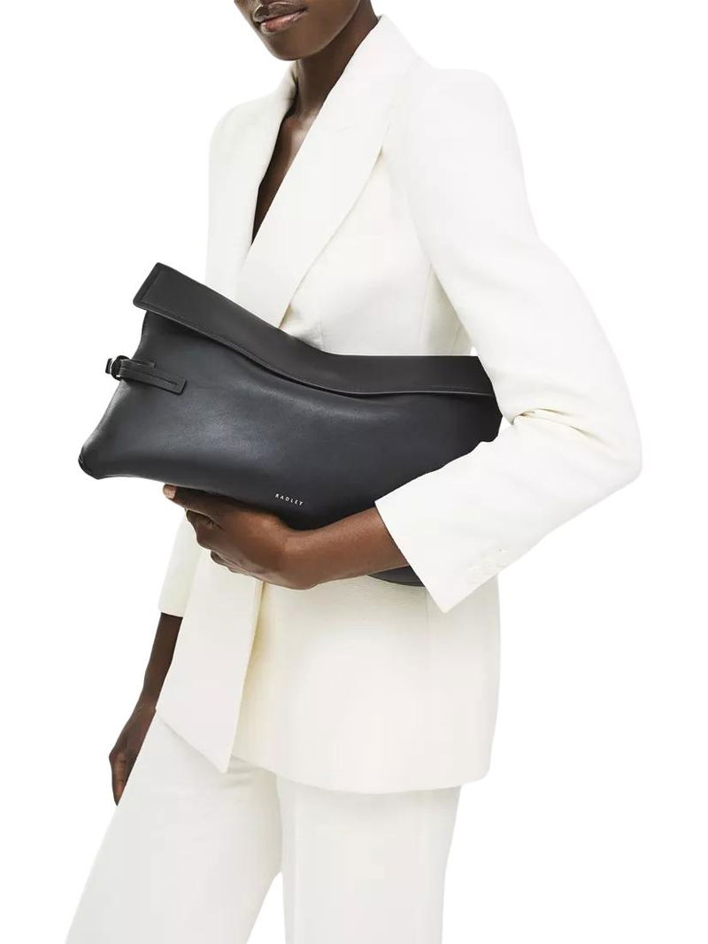 The new Fleet Street clutch bag is crafted with creative origami folds along the soft sides, a flap-over top edge and a strong magnet closure. A stylish shape crafted in smooth leather with signature Radley craft details, including hand-stitched tacks on side tabs, an envelope folded base and our heritage mark foil branding inside.