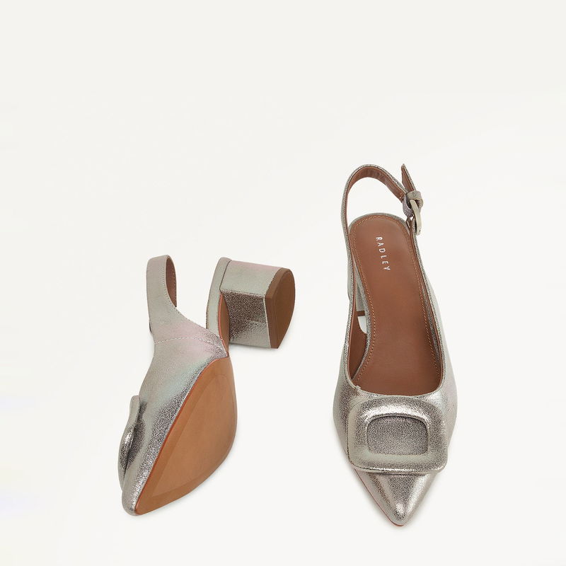 A sophisticated style for glorious spring mornings, through to cool autumnal afternoons. The versatile Grosvenor Arcade slingbacks are made with metallic leather and are ultra wearable thanks to the comfortable low block heel and secure buckled strap.