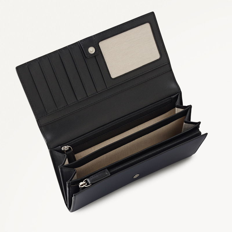 Our Scottie dog sits front and center on our Heritage Radley collection in padded leather applique. A new, spacious shape, this extra large flapover wallet is made with grain leather and features lots of interior space with slots and pockets. Puppies and practicality? The perfect combination.