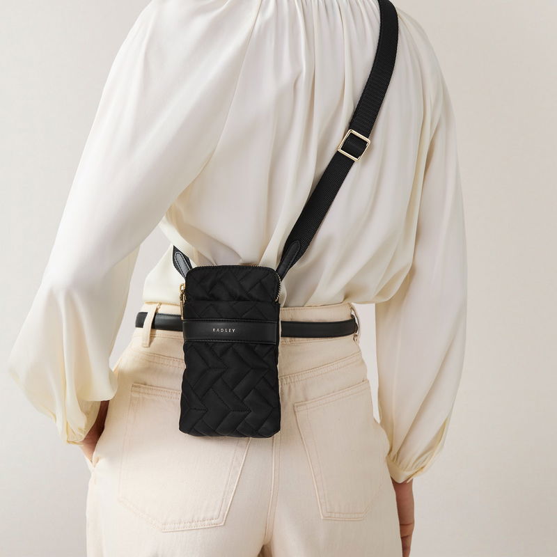 Holland Park Fabric Medium Zip Around Phone Crossbody Bag In Black