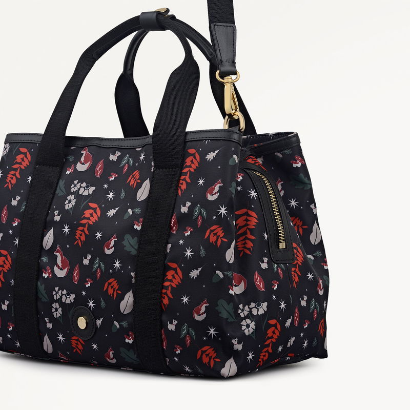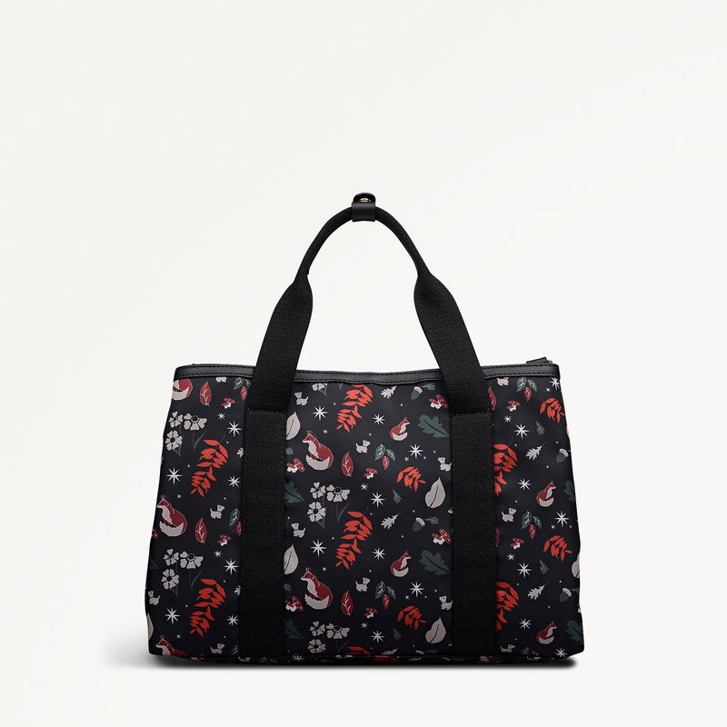 Holly Avenue Fox Fabric Medium Ziptop Grab Bag In Black