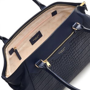 Radley’s Designers experiment with creative construction to form the triangular silhouette of the Hope Gardens bag. Folded edges, pinched bases at the sides and inlaid panelling are just a few of the specially shaped features you'll see. Finished with an extended zip, contrasting snake - embossed trims and a split handle construction. Smooth leather Snake - embossed trims Handle clips onto metal bar hardware Curved top edge Extended zip fastening with branded puller and long leather trim Faux suede lining Interior slip pocket Heritage mark Foil logo Comes with a dust bag