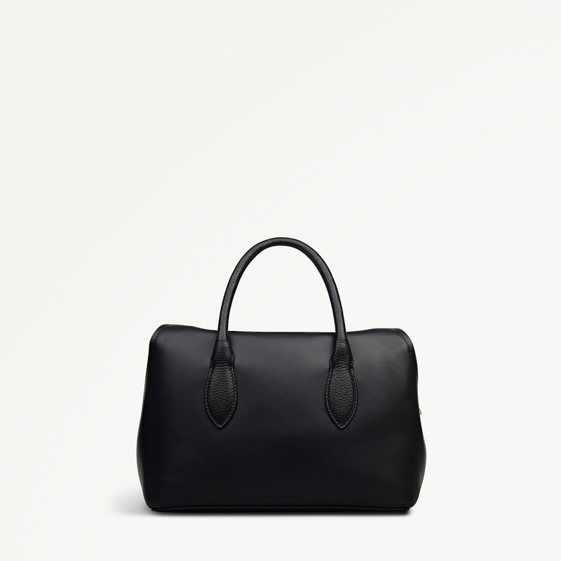 Liverpool Gardens Leather Small Ziptop Grab Bag In Black