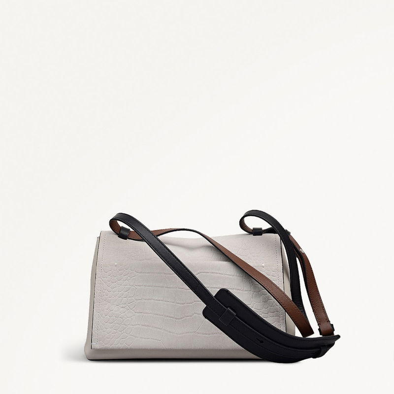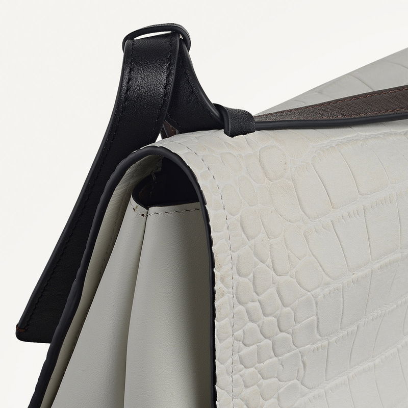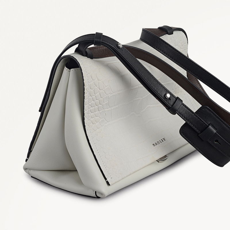 Mercer Street Faux Croc Medium Flapover Shoulder Bag In Snow