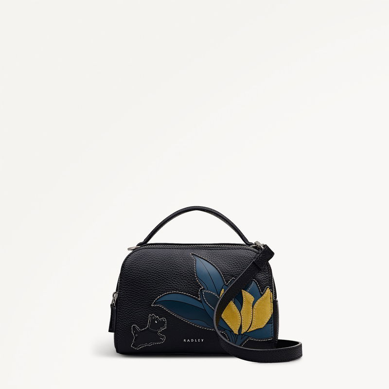 Nature Blooms Leather Small Ziptop Cross Body Bag In Black