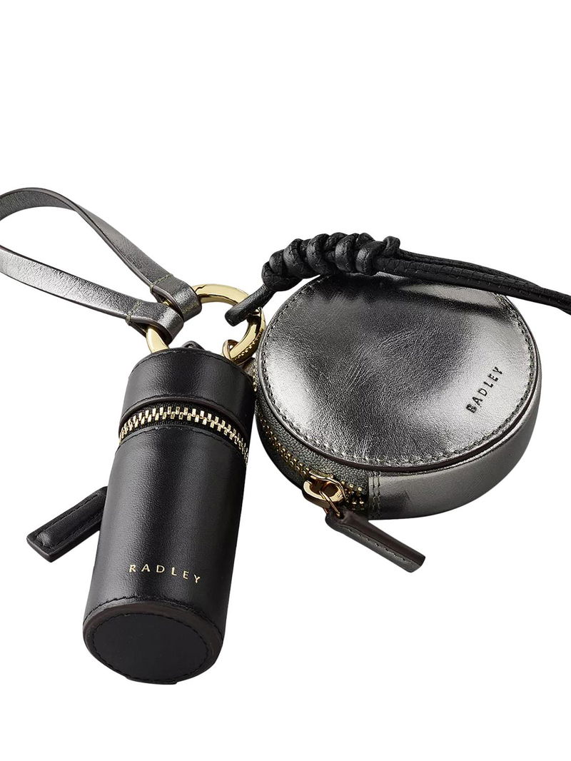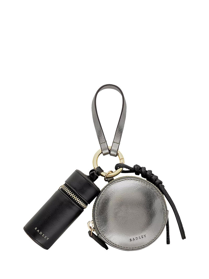 More than just a decoration, the Nicholas Road keyring features two zipped pouches perfect for storing those mini essential items. Crafted with contrasting smooth and crinkle metallic leathers, a knotted leather charm and carabiner clip ring hardware.