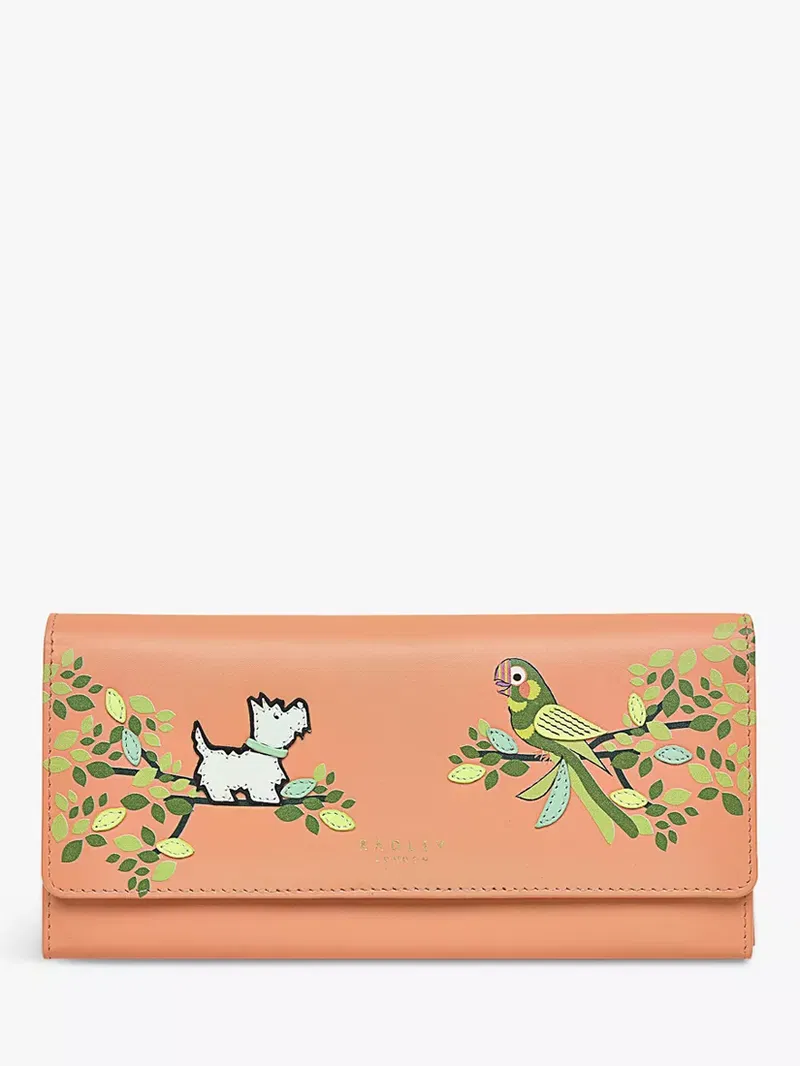 Saying hi to the locals. The Scottie has taken to the treetops to visit London's famous parakeets on this large purse. With a wildlife-inspired print on smooth leather and lots of interior pockets, this purse isn't just charming and practical, it's made to last too.