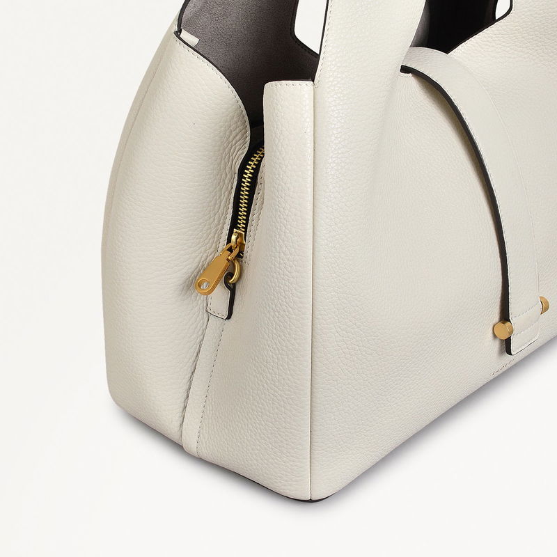 Sloane Street Leather Medium Ziptop Grab Bag In Chalk