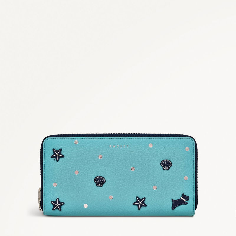 Starfish And Seashells Leather Large Zip Around Wallet In Maldives