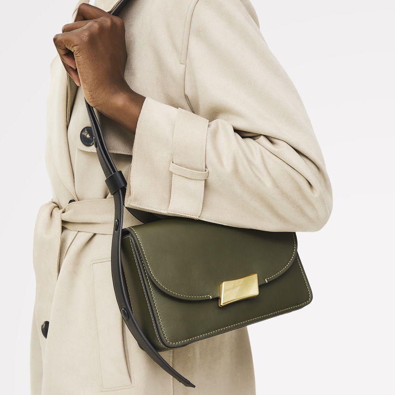 The Belsize Leather Small Flapover Shoulder Bag In Pine Needle