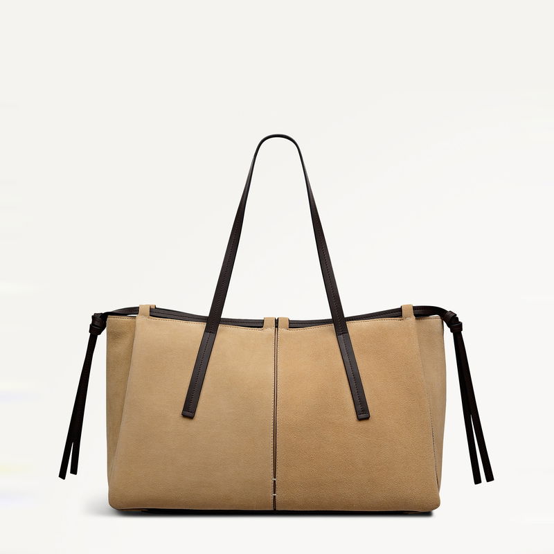 An abundance of craft details transforms The Connaught from an everyday tote bag into an artisanal creation. Details include thin leather threaded through the loops along the top edge, decorative knotted trims that hang at the sides and contrast inserts, which can be spotted at the gussets.