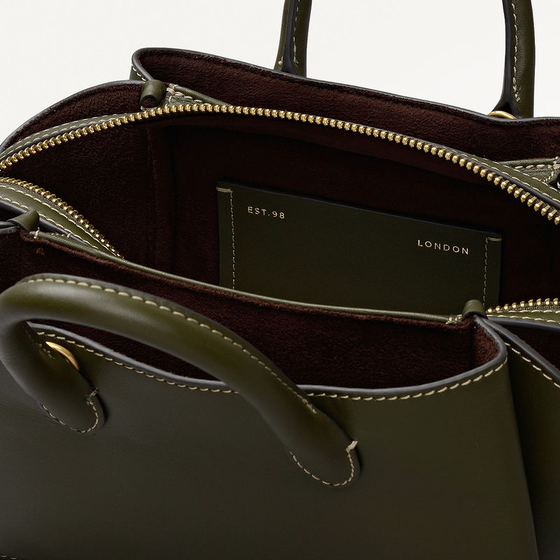 The Romilly Leather Small Ziptop Grab Bag In Pine Needle