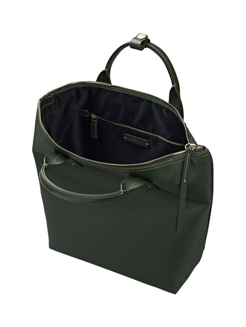 The Townley combines Radley's penchant for premium leathers with their responsible approach to craftsmanship, with recycled polyester fabric and contrast leather trims. A smart backpack, detailed with central-stitched handle tabs and a chunky zip with a looping leather puller.