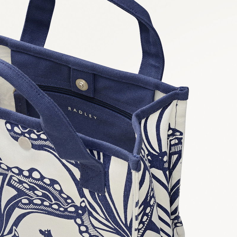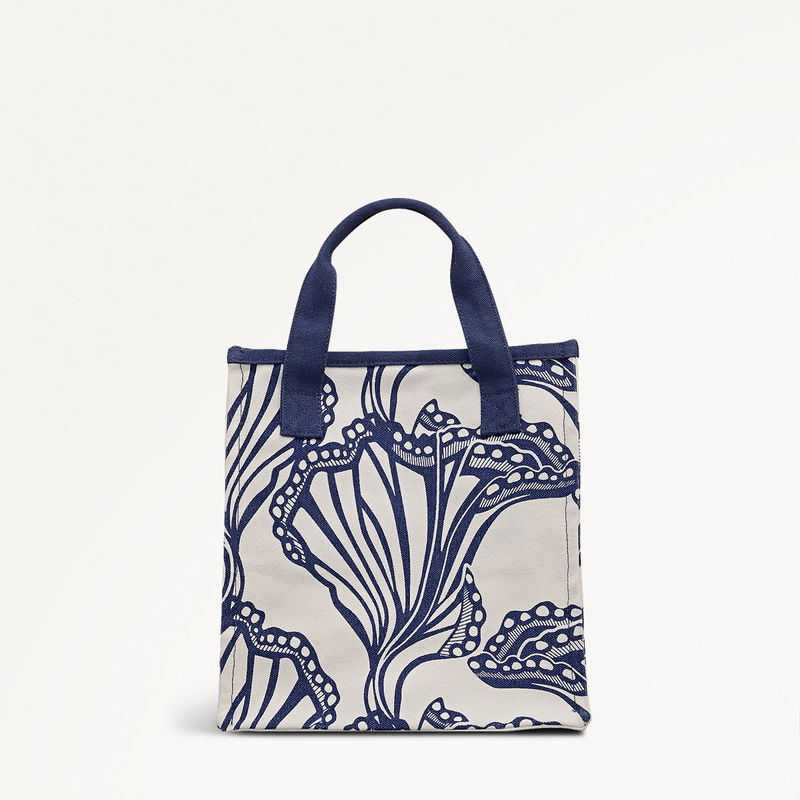 Inspired by summers spent on salty shores, the Under The Sea grab bag is designed with deep blue coral prints. A reusable accessory crafted using recycled cotton canvas with a press stud fastening and zipped interior pocket.