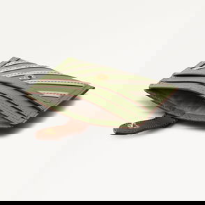 Crafted with grained leather and a dog stud tab, this shape opens like a booklet to reveal modern, functional interiors with space for every card and coin.