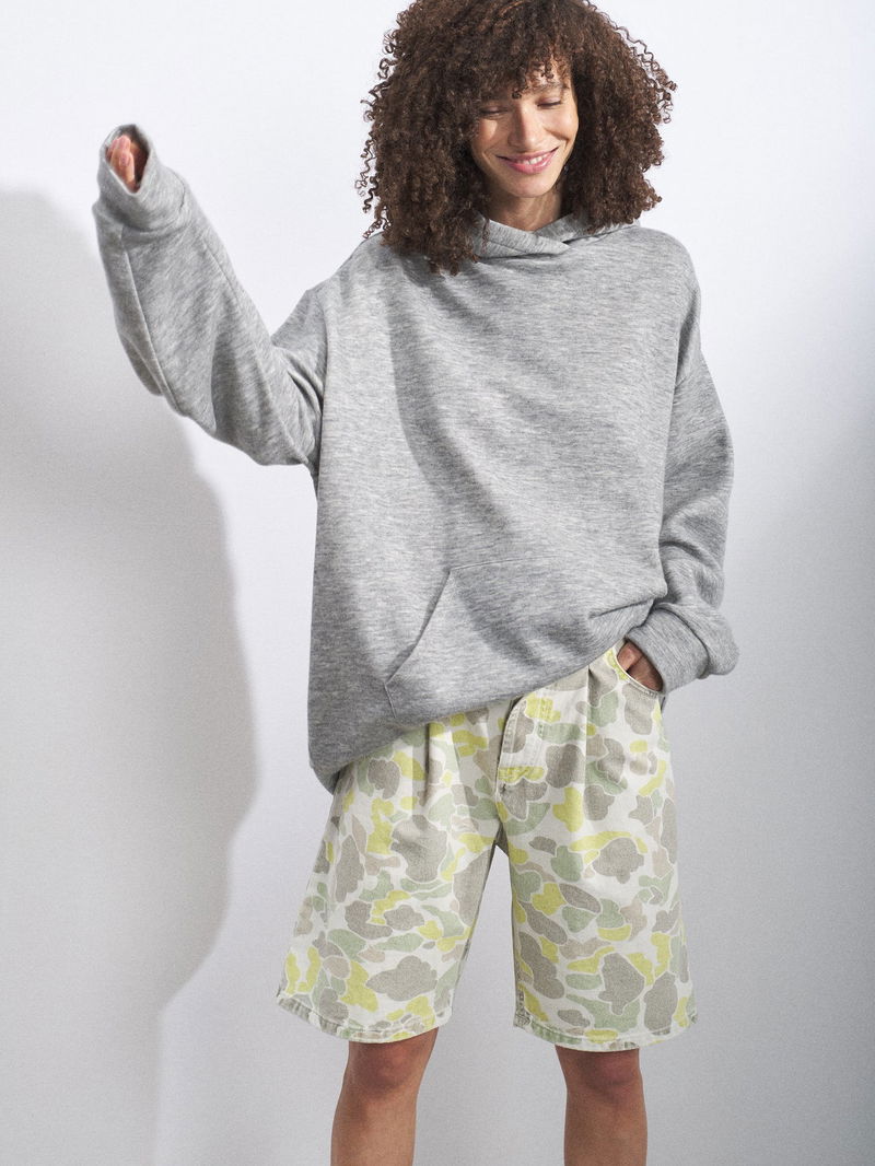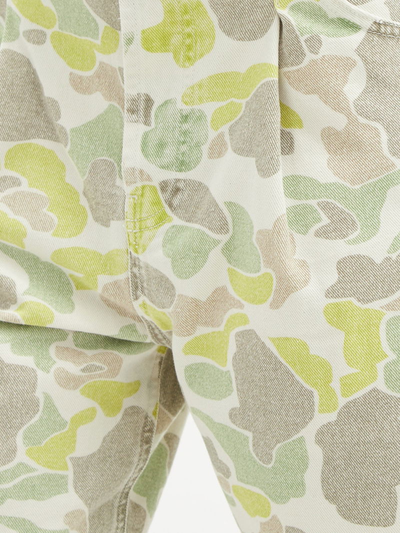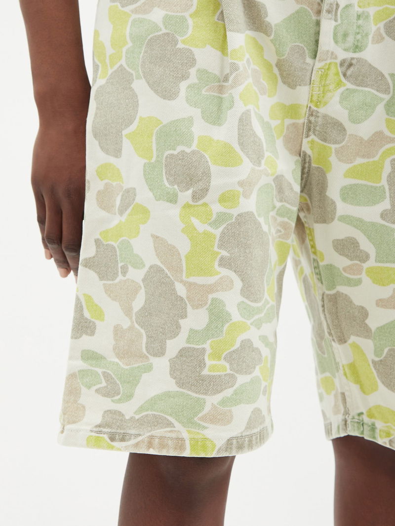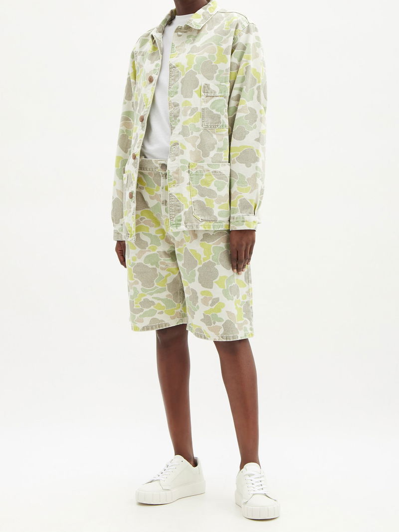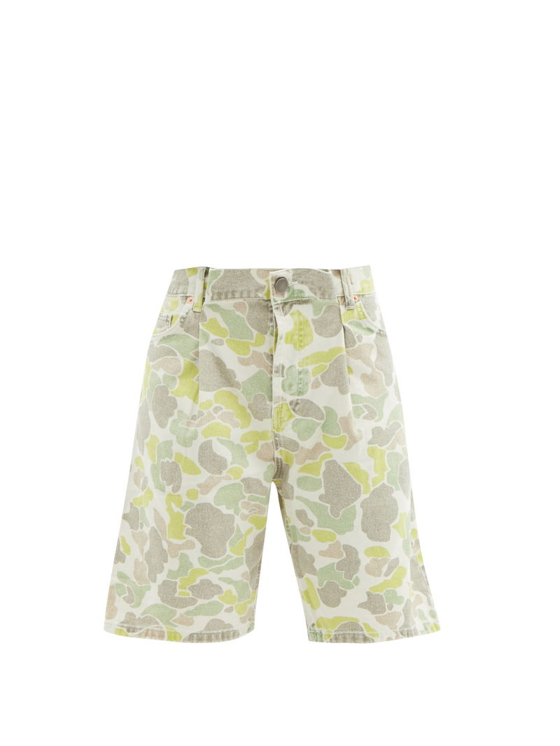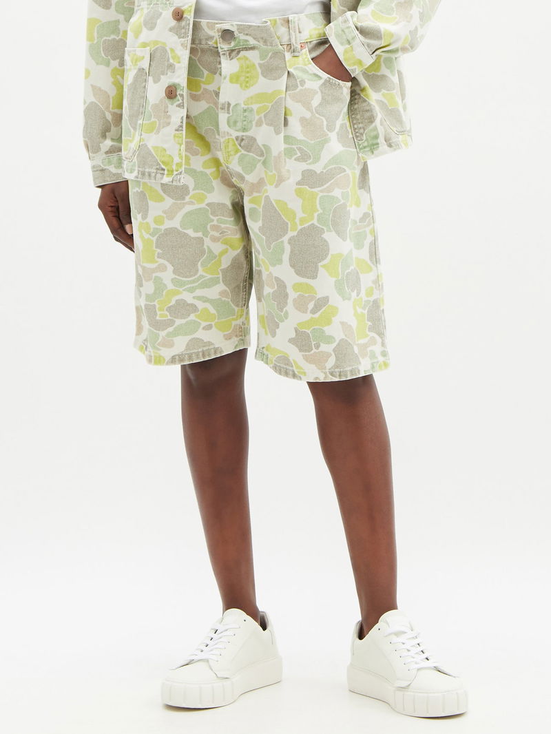 Raey’s white shorts capture a laid-back sense of ease with a muted green and grey camouflage print. They’re cut from cotton denim to a knee-length silhouette and are shaped with a pleated and stitched-fold construction, with a roomy fit for a nonchalant mood.