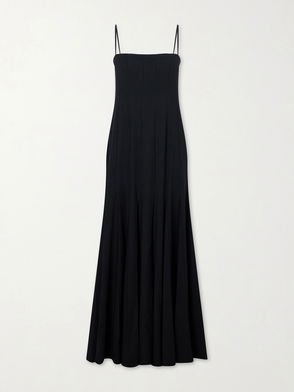 Raey’s black shift dress is shaped to a streamlined silhouette with a plunging V-neck, panelled bodice and discreet side-seam slip pockets. It’s made in the UK from soft virgin-wool crepe and is lined in silk.