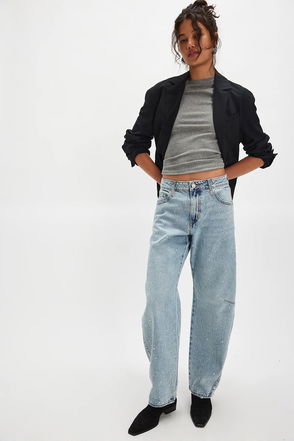 Raey’s ivory Dad baggy boyfriend jeans are sustainably made from organic-cotton denim and produced with a low EIM (Environmental Impact Measurement) rating measured on water and energy consumption, chemical usage and impact on workers’ health. They're cut to a relaxed fit with cropped cuffs for a slouched, loose silhouette.