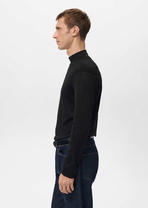 Strike a relaxed mood with Raey’s black T-shirt, shaped to a relaxed silhouette with a high neck and dropped-shoulder long sleeves. It’s Italian made from cotton jersey that includes both virgin and recycled fibres and has a crinkled handle.