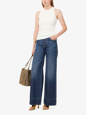 Raey’s ivory-white sleeveless top has a knotted neckline that hangs in asymmetric folds. It’s made in the UK from textured crepe that’s blended with elements of wool, then falls to a fluid hemline with a concealed back zip.