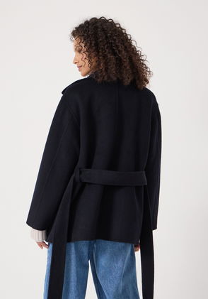 A sophisticated take on boy-borrowed style, Raey's oversized peacoat is crafted from speckled navy tweed containing elements of linen, alpaca and mohair. Made in the UK, the boxy shape is tempered by exaggerated lapels and flap pockets, then lined with navy cotton to ensure a clean drape. Wear it over relaxed weekend separates for a nonchalant mood.