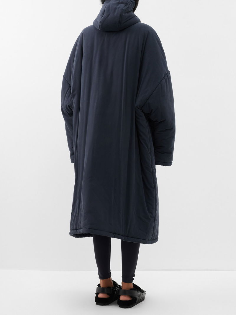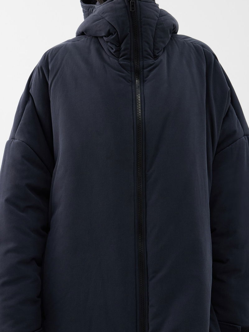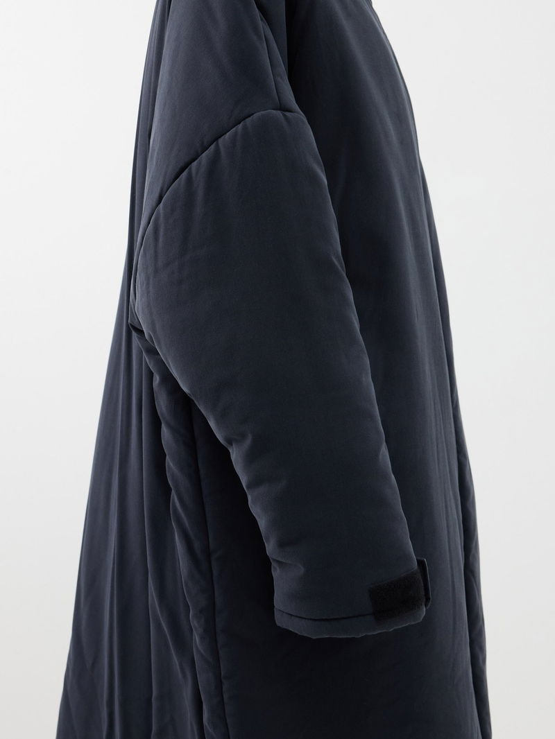 Raey shapes this navy Peace padded coat from soft silk to a slouchy shape with dropped shoulders and velcro cuffs.