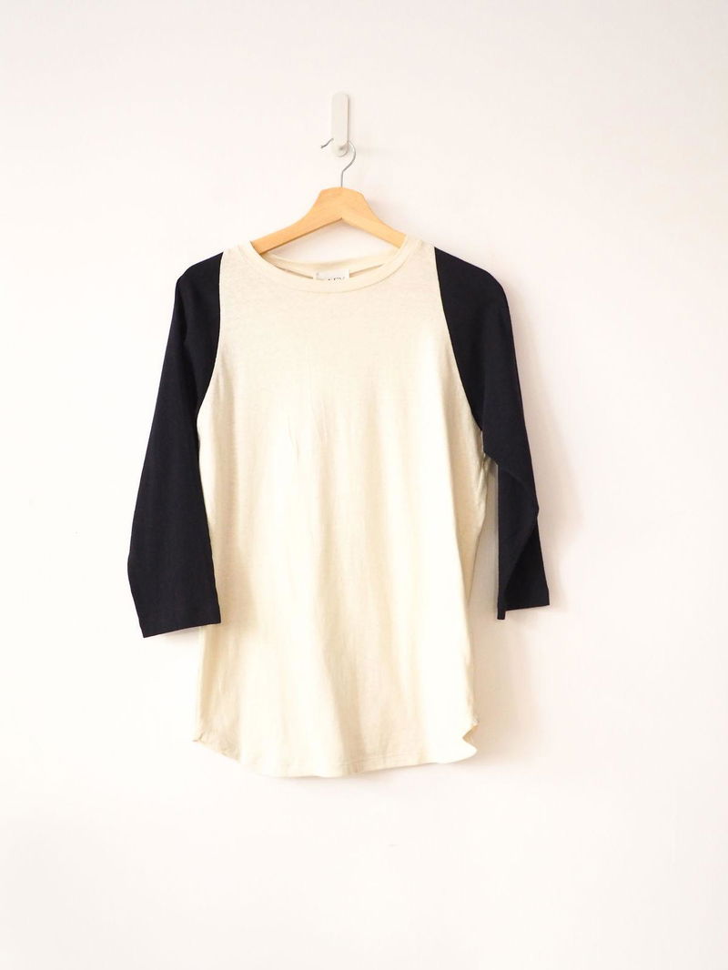 Made from a recycled cotton-blend jersey, Raey’s white T-shirt has a round neckline and navy raglan sleeves for a comfortable feel.