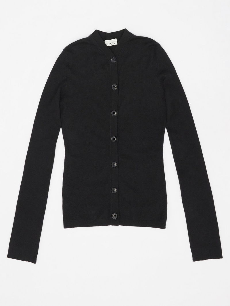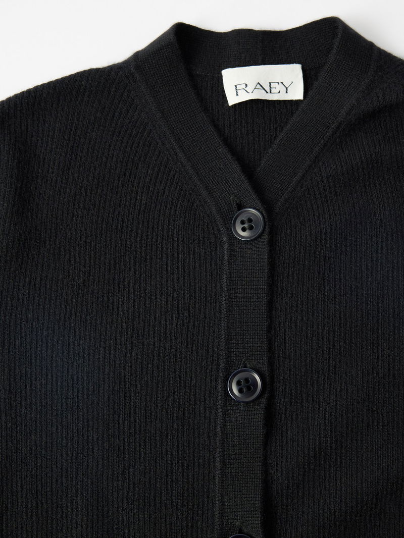 Raey's black V-neck cardigan is knitted from semi-sheer cashmere that's Global Organic Textil Standard certified for a more eco-friendly option.