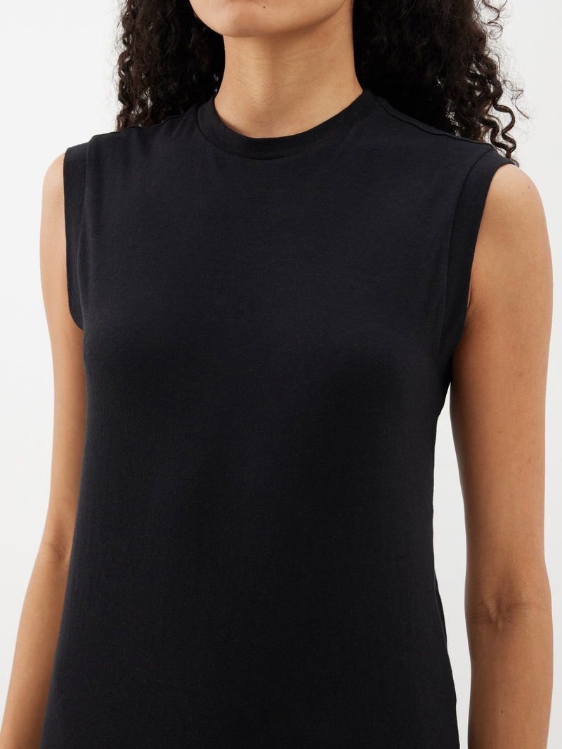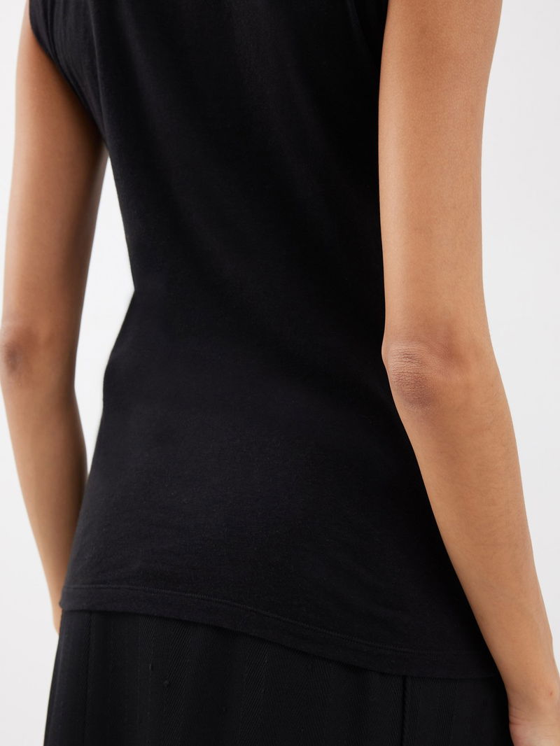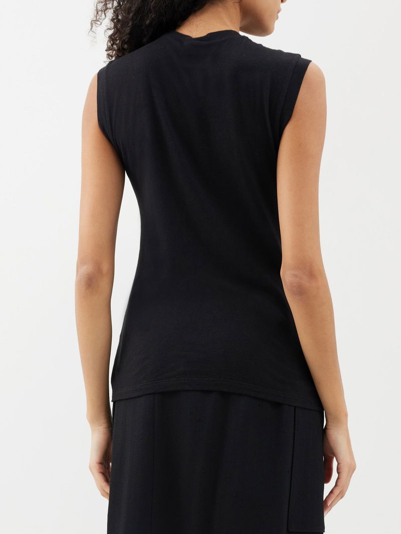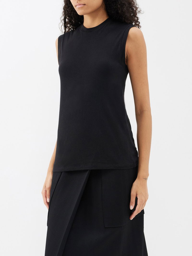 Made from a soft blend of cotton and cashmere, Raey's black tank top has a high neck and a relaxed fit.