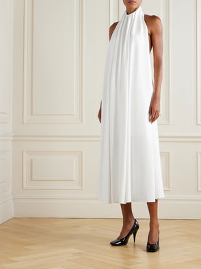 Raey's orange, yellow and black linen floral-chintz dress feels elegant and relaxed in equal measure. It's crafted in the UK with a flattering halterneck and self-fastening neckties, while the split skirt can be wrapped around the body and fastened with the coordinating waist ties. Sweep hair up to showcase the open back before styling it with box-fresh leather trainers.