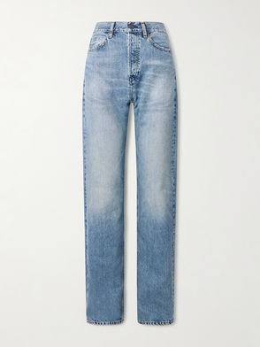 Shaped to a high-rise silhouette with straight legs, Raey’s light grey Track jeans evoke a vintage mood.