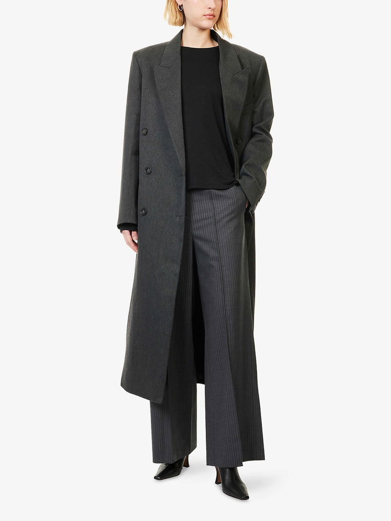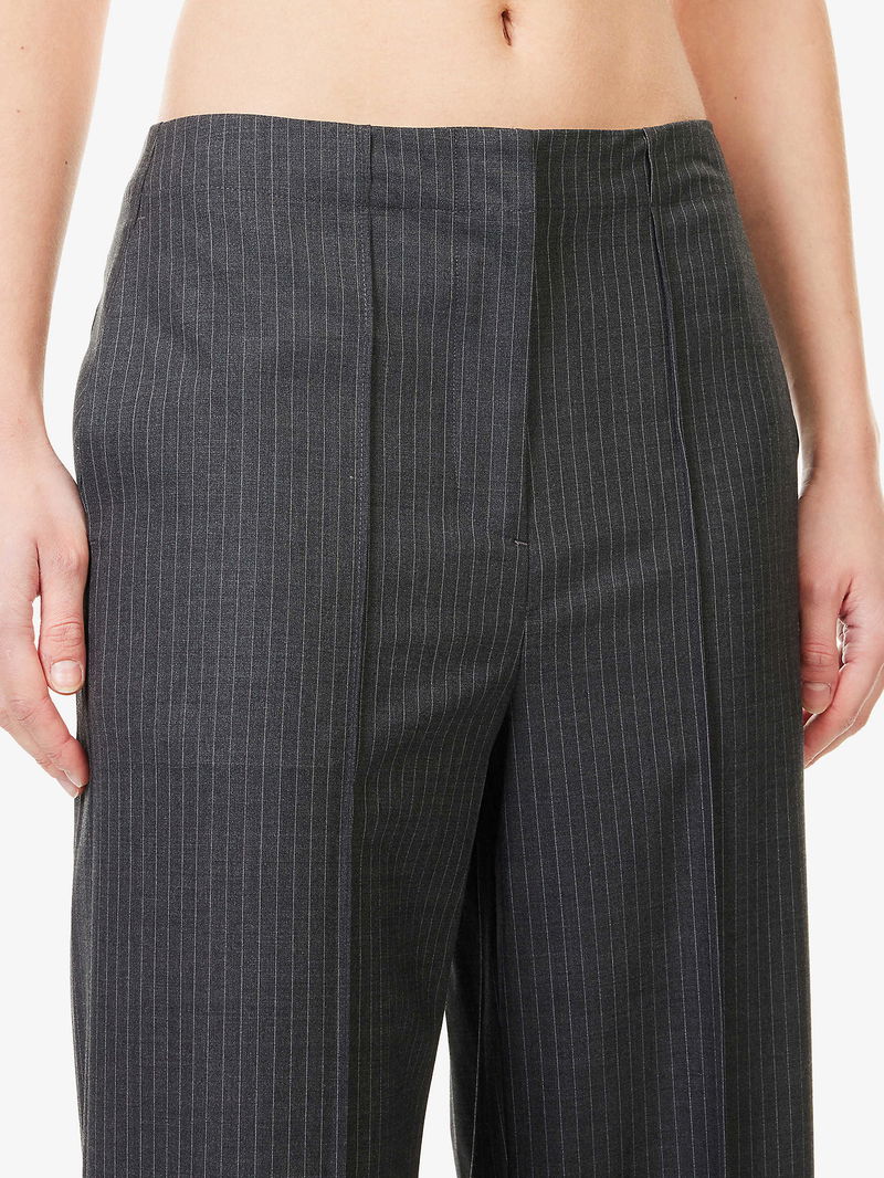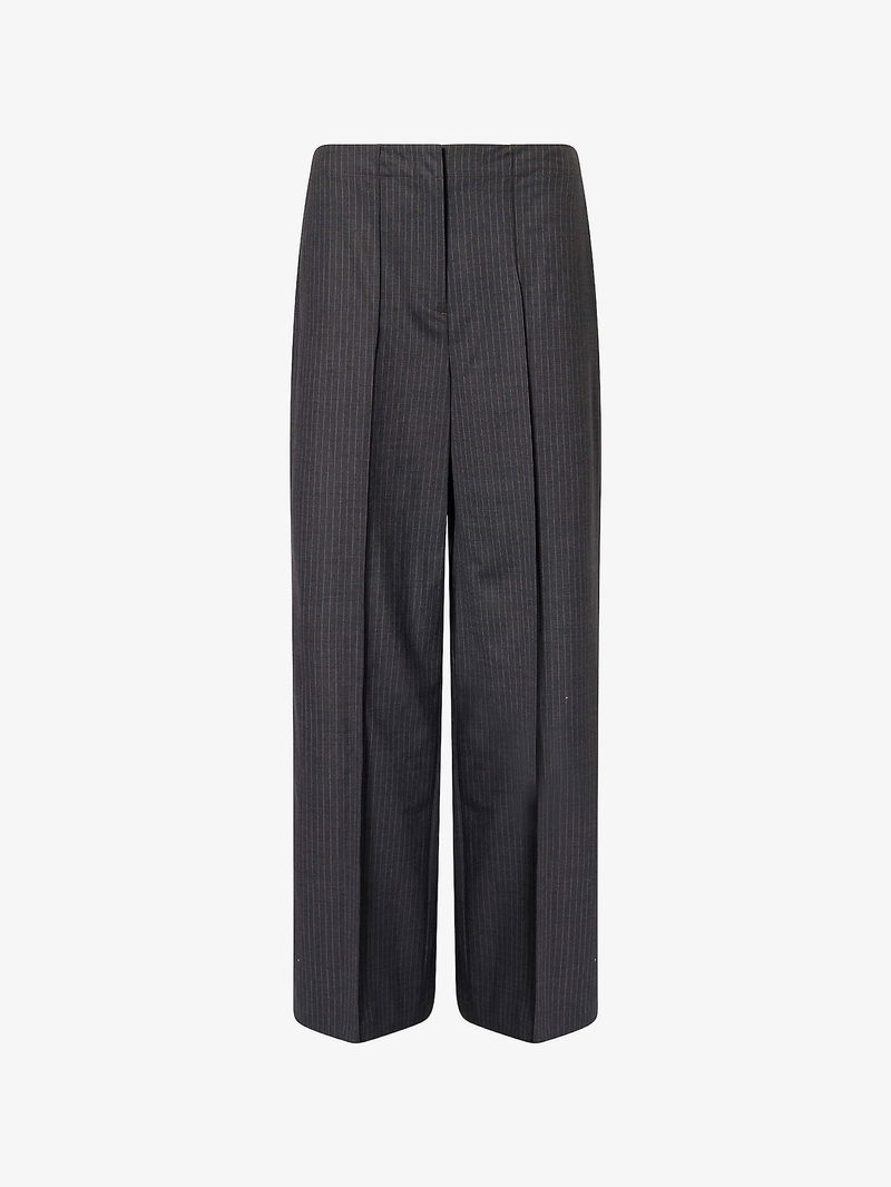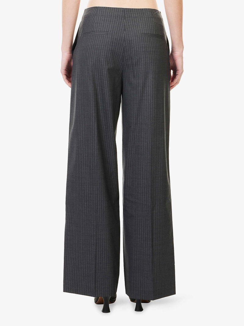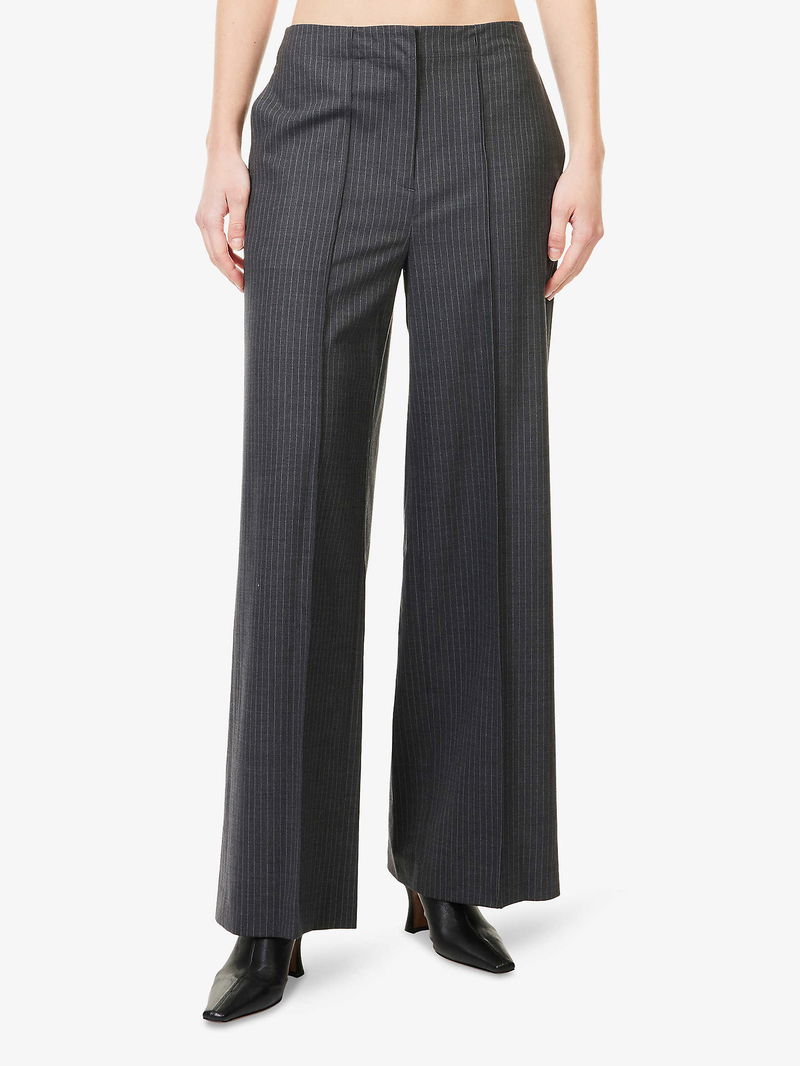 rag & bone wool-blend trousers. Concealed button, hook-and-eye and zip-fly fastenings at front. Regular fit, high-rise, wide leg, stitched pressed crease at front, side slip pockets, welt pockets at back, all-over pinstripe pattern.