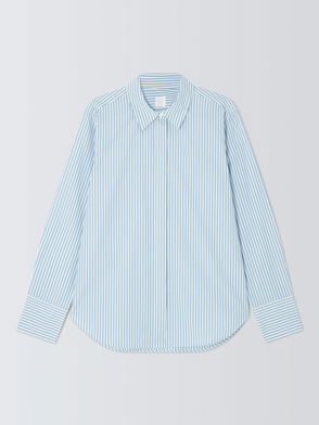 Regular fit, pointed collar, three-quarter length sleeves, roll-up cuffs, one chest patch pocket, all-over stripe print