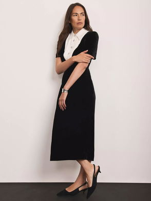 A classic sleeveless shirt dress in signature, lightweight cotton poplin with military pockets and dagger button details.