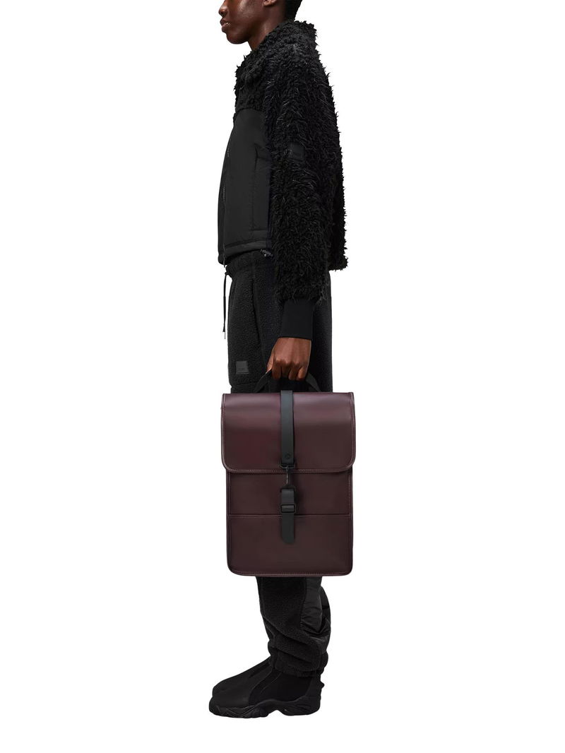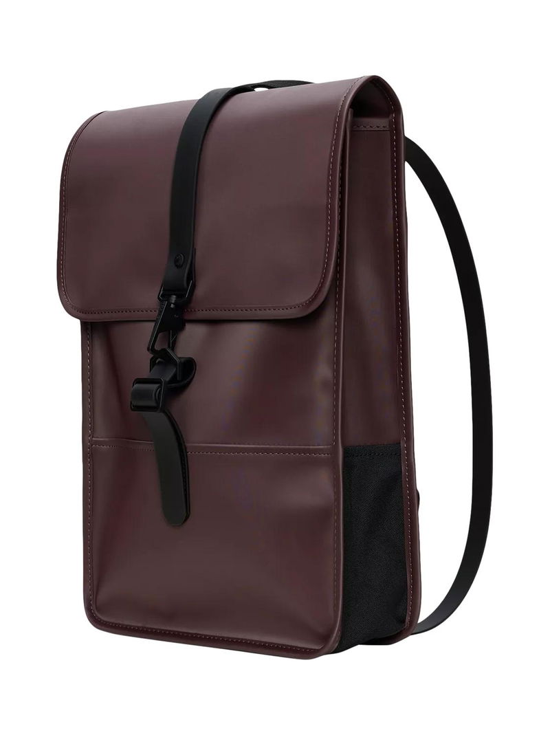 Backpack Mini is a downscaled version of Backpack. The iconic silhouette is characterised by its squared shape and flap with magnet snap fastenings. This clean and ever-contemporary rucksack features an internal laptop pocket, a spacious main compartment and a concealed external phone pocket on the back panel. The laptop pocket fits a 13" laptop with sleeve, making the squared backpack a perfect computer-ready staple for commuting on bike or by foot. Backpack Mini is cut from Rains' signature PU fabric, engineered for carrying strength, durability and a smooth feel.
