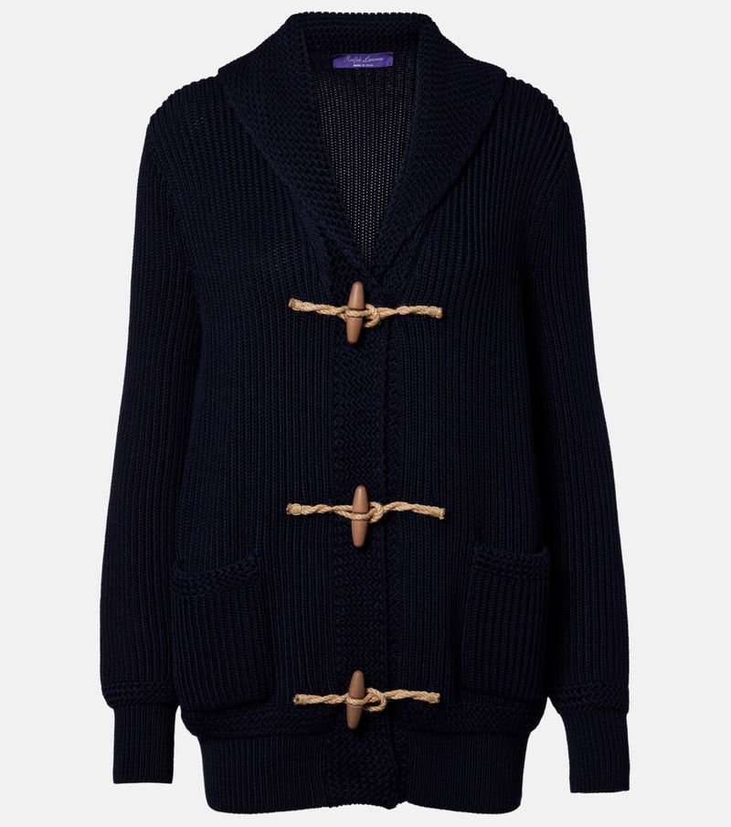 Synonymous with an all-American lifestyle, Ralph Lauren Collection is the pinnacle of preppy and sophisticated dressing. This cardigan is knitted from cotton and silk and boasts a shawl collar and statement toggle fastenings at the front.