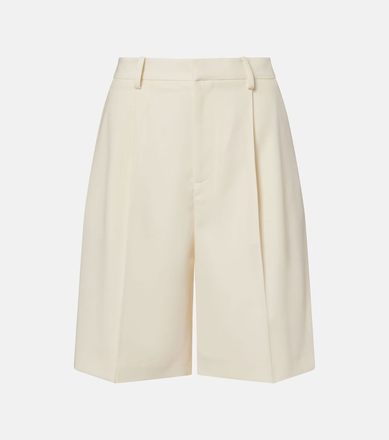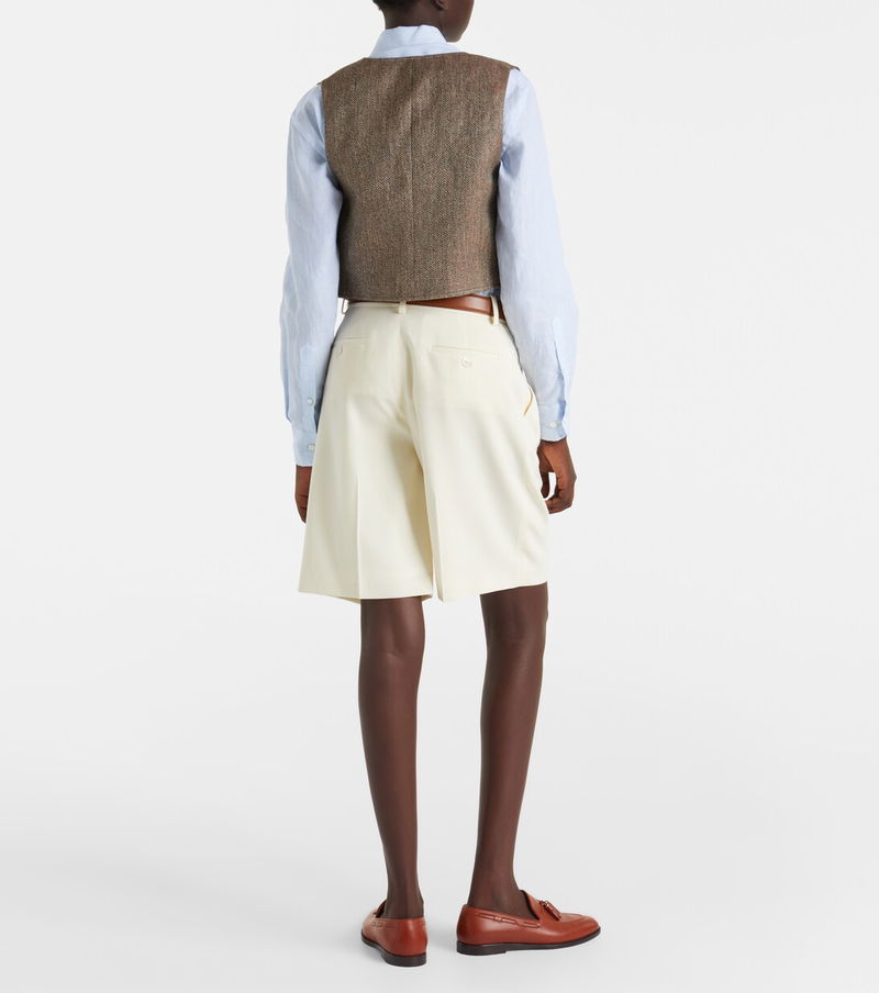Crafted in Italy from compact wool gabardine, the Minetta Bermuda shorts by Ralph Lauren Collection offer a modern take on classic tailoring. Featuring pressed pleats and a dart at the waist, the style offers a fluid yet structured silhouette.