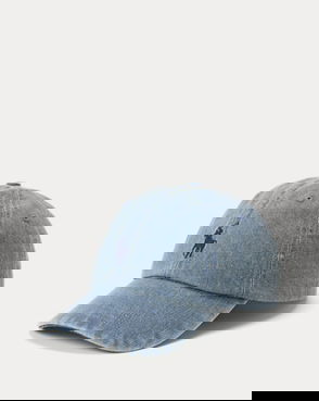 Custom-embroidered logo patch on the front inspired by an original Double RL ball cap from 1993. Made from indigo-dyed denim. Mesh back panels. Signature green underbrim. Adjustable back strap.