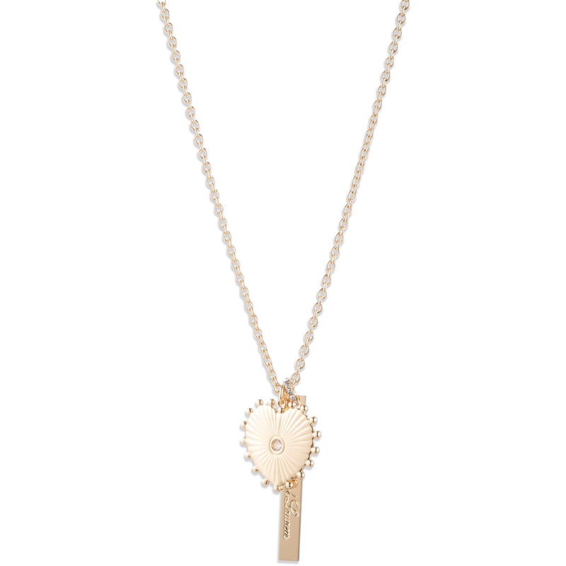 Add a touch of elegance to your everyday look with this Lauren Ralph Lauren Heart Pendant Necklace. Crafted with a delicate gold-tone chain, this necklace features a radiant heart-shaped pendant adorned with a central crystal accent and a beaded border for timeless charm. The pendant is paired with a sleek rectangular tag engraved with the Lauren Ralph Lauren signature, offering a refined, designer finish. Perfect for both casual wear and special occasions, this versatile piece layers beautifully or stands out on its own.