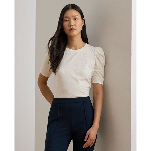 Made from soft, breathable slub jersey, this crewneck top is distinguished by feminine puffed sleeves. An embroidered logo on the hem completes the look.