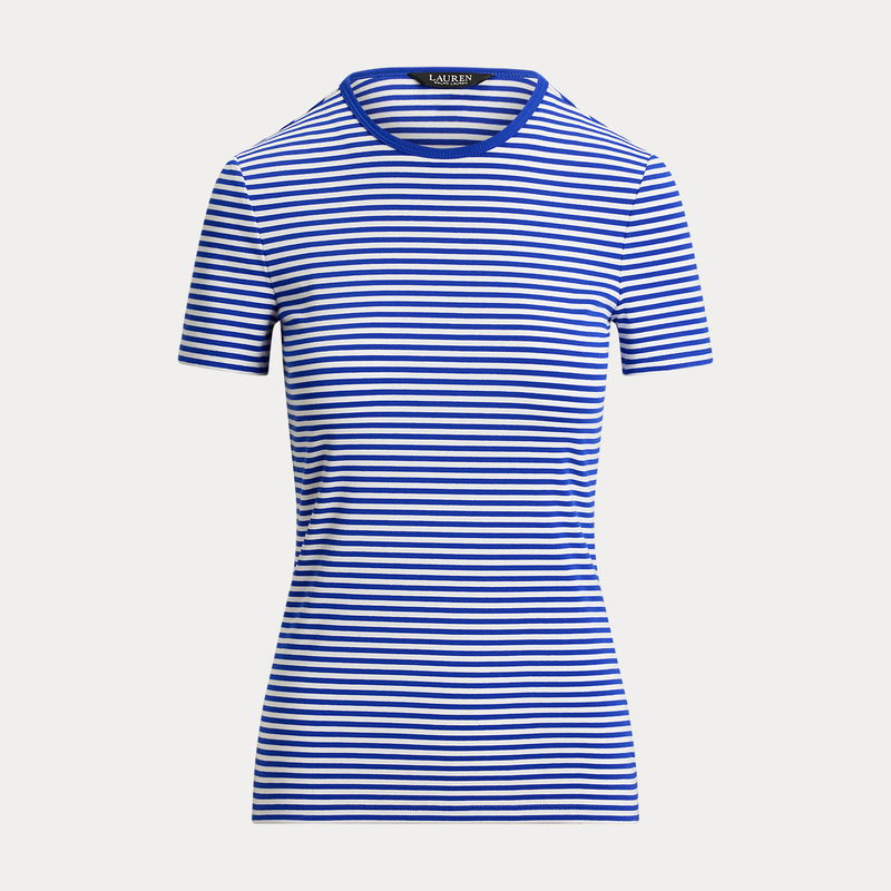 Petite - Striped Stretch Cotton Crewneck T-Shirt