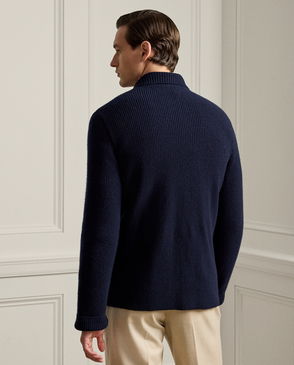 To create this cardigan, Ralph Lauren Lauren reimagines the sophisticated silhouette of a shawl-collar tuxedo jacket with thick-gauge cashmere yarn. Knit in Italy, it features a hand-embroidered bullion patch of a signature crest.