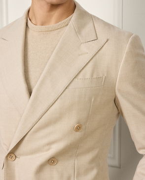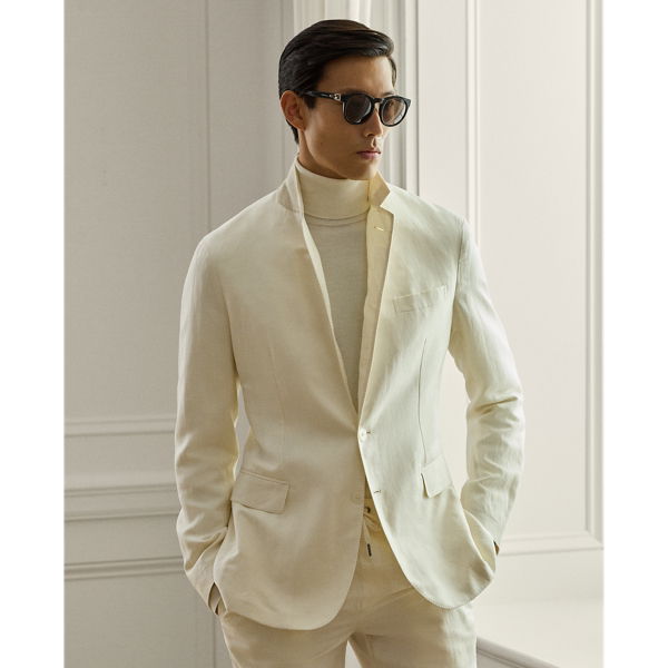 Hand-tailored in Italy, the Hadley is defined by its soft shoulder and exceptionally light weight. This version showcases an exquisite blend of silk and fine linen. Its bespoke fabric features a naturally elegant slub texture.